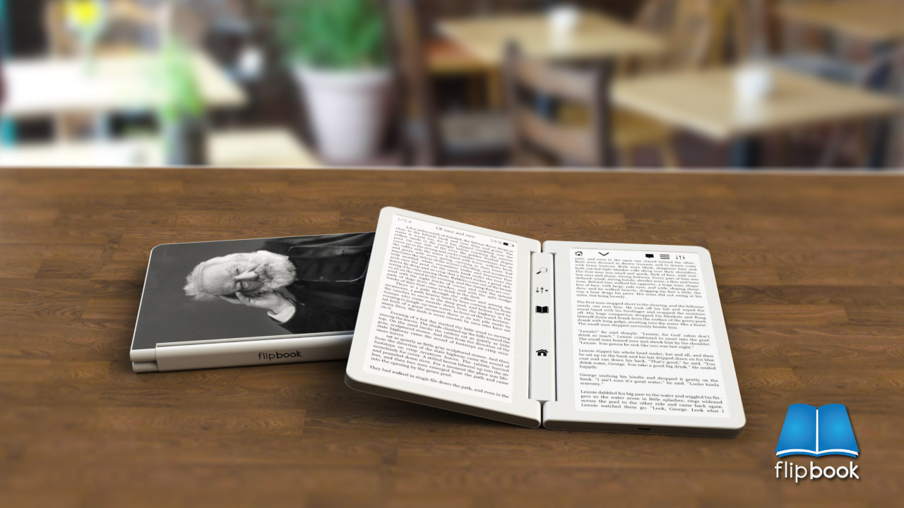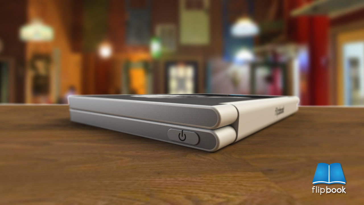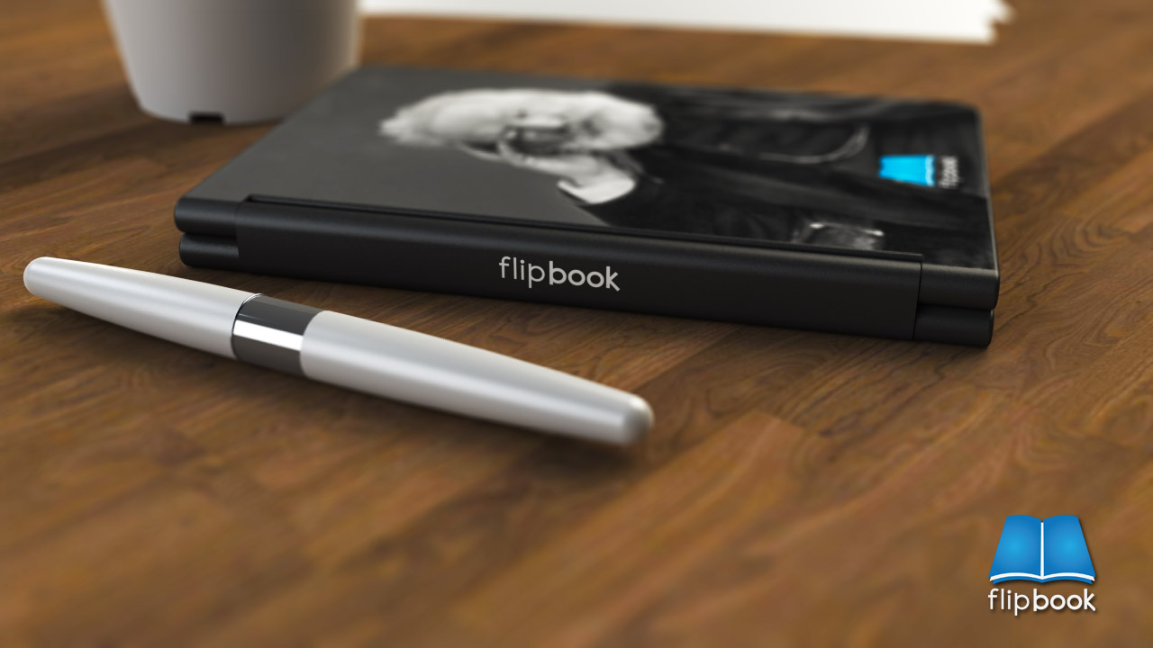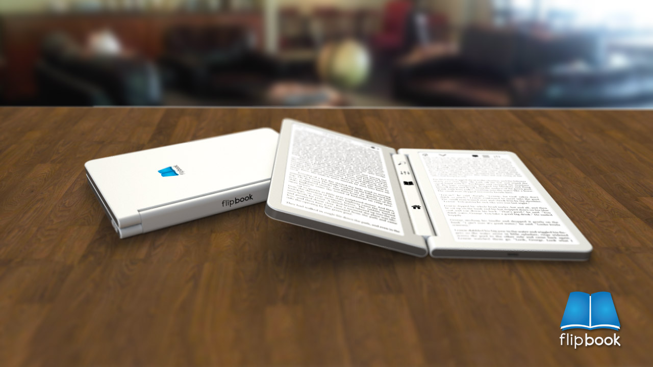 flipBook vypadá jako klasická kniha, když ji otevřete místo textu na papíře na vás bude koukat text ze dvou E Ink displejů. Uprostřed otevřené „knihy“ jsou tlačítka pro vyhledávání, nastavení, návrat do hlavní nabídky. V horních částích displejů jsou různé další tlačítka nebo informace o aktuální stránce v knize, stavu baterie atd.. V konceptu se počítá s dotykovými displeji, protože nikde nejsou tlačítka pro přepínání stránek. Další koncepty naleznete na stránkách designera zde.